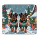 This festive design captures the joyful spirit of the holiday season, featuring an adorable dogs.Nestled in a winter wonderland, complete with a decorated Christmas tree, and beautifully wrapped presents. Snowflakes gently fall, adding a magical touch to the scene, while the vibrant colors of the holiday decorations create a warm and cheerful atmosphere.