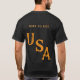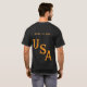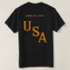 America's 250th anniversary t-shirts in black with America and dates 1776-2026 written across the chest, with a chest initial over the heart you can change and edit. On the back are the words, Born To Ride, with large USA letters underneath, all in gold text and all is editable. Great for 4th of July pack t-shirts