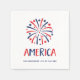 Den här roligten, moderna blöjor, har färgstarka röda och blå fyrverkerier med stjärnor och säger "Amerika" i handskriven trendig. Den här patriotiska helgdag är perfekt för party i Independence day.