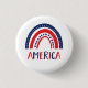Den här söta, moderna knappen har en färgstark röd, vit och blå regnbåge med hjärtan och säger "Amerika" i handskriven trendig. Helgdag i coola är perfekt för Independence day den 4 juli.