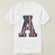 En stilren design med bokstaven "A" fylld med ett motiv i form av den amerikanska flaggan. Kombinationen av klassisk typografi med patriotiska nyanser av rött, vitt och blått skapar en unik och modern design. Perfekt för dem som vill uttrycka sin nationella stolthet eller personliggöra produkter med sin initial. Den fungerar perfekt på T-shirts, kuddar, muggar och andra produkter med tryck på beställning – särskilt för tillfällen som fjärde juli eller minnesdagen.