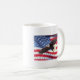 Amerikanörn med amerikanska flaggan i bakgrundsmugg