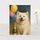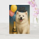 Fira det nya året med charm och en stor leende! Detta glada amerikanska eskimåhund-nyårskort visar en fluffig, vit amerikansk eskimåvalp omgiven av festliga detaljer för att välkomna det kommande året. Med sin ljusa och glada design fångar detta kort perfekt andan av nya början, lycka och hopp.