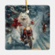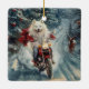 Amerikansk eskimo Dog Riding Motorcycle jul - jul Julgransprydnad Keramik