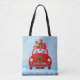 Amerikansk eskimo-Hund i bil med Jultomten Tygkasse
