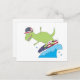 En söt illustration av en grön Tyrannosaurus Rex-dinosaurie som surfar med en hatt med amerikansk flagga och surfbräda. Perfekt födelsedagspresent, dekoration för barnkammare, konst för barnrum, heminredning, skolstart eller någon annan speciell tillställning.