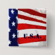 Stiliserad amerikansk flagga gör en lysande färgad och patriotisk knapp för Independence day, Flagga-dagen, minnesdagen, veterandagen, patriotdagen och dagen för de väpnade styrkorna!