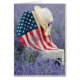 Ordförande i den lila ryska salen med amerikansk flagga och hatt.