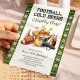 Gör dig redo att sparka igång festligheterna med stil! Denna amerikanska fotboll och öl-födelsedagsinbjudan för vuxna ger all matchdagsenergi med en djärv fotbollsplanbakgrund, handmålade vattenfärg-öl, en fotboll och en megafon. Med den roliga frasen "fotboll, kall öl och födelsedags-skål" överst, sätter den den perfekta tonen för en livlig födelsedagsfest.