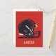 Detta vykort visar en illustration av en amerikansk fotbollshjälm mot en röd bakgrund. Denna design är bra för proffs- och amatörfotbollsspelare.