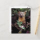 Vykort med en mård som tittar ut från undervegetationen.