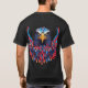 Den "amerikanska Eagle" t-shirt-designen har en kraftfull och stor örn mitt under flygningen, vingar breda ut sig och symboliserar frihet och styrka. Örnen är mycket detaljerad och fångar upp sin häftiga blick och sina vassa taloner. Bakom örnen, det amerikanska flagga vågar stolt, med stars och stripes som ett patriotiskt drag. Kombinationen av örnen och flagga skapar en djärv och dynamisk perfekt för att uttrycka nationellt pride och ett kärlek för det amerikanska arvet.