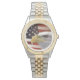 Denna kvinnas klassiska handklocka visas i guld och silver med två ton. Har ett fantastiskt bild av våra amerikanska frihetssymboler som ansikte i denna klocka. Söt andra handen. Anpassa den här klockan eller köp som det är.