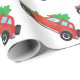 Amerikanska eskimo Hund Driving Car w/Julgran Presentpapper