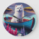 Amerikanska eskimo-Hund på Paddle: En scen Äventyr Stor Klocka
