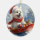 Amerikanska eskimo i Sledge Låt det snöa jul Julgransprydnad Keramik