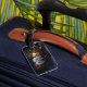Amerikanska eskimo Snowy Sleigh-juldekretet Bagagebricka