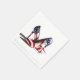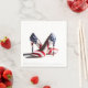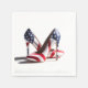 Högkladdade skor med en design som inspireras av den amerikanska flagga placeras mot en vit bakgrund.