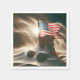 Ett par militära stövlar finns i sanden och håller en amerikansk flagga i banden