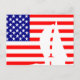 American Flagga Sailing Boat Nautical Postcard. Segelbåt silhouette och U.S. flagga rött, vitt, blått vykort.
