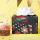 Amerikanska flaggan med patriotiskt slående in papper för fyrverkerier