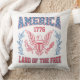 Det här trendiget är patriotiskt utformat med en vintage Americana-linjekonst teckning i en örn med texten "America Land of the Free". På baksidan är en blå bakgrund med vita stjärnor.