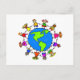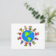 Cute och olika lycklig-barn som håller händer i en värld med karta i Nord- och Sydamerika.