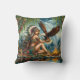 En inhemsk amerikansk kvinna i traditionell anda interagerar med en örn bredvid en serenflod, omgiven av lush träd och en avlägsen bergssyn.