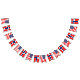 Sträng med buntbanderoll för amerikanska och norska internationell-bröllopsfester. USA-pridet är utformat med röd, vit och blå stars och stripes-flagga i Amerika. Leveranser, dekaner, dekorationer och tillbehör från anpassningsbar party för firande i internationell giftermål / relationer. USA:s flagga av Amerika och land flagga av Norge. Det skandinaviska pridet. Dubblans nationalitetsmönster för brudpar och brudpar. Och trevligt att välkomna hem party, insamling av kulturarv, återförening, världsomspännande affärsmöten, företag och resemöten.