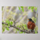 Amerikansk Robin utförd på gren omgiven av vår blommar