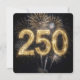 Det gyllene numret 250 lyser upp av ljusa fyrverkerier som exploderar i olika färger mot en mörk himmel och skapar en festlig stämning.