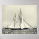 De två konkurrenterna ses vid startlinjen, de är Valkyrie II och Vigilant. Detta är ett återställande och en förbättring av bilden av den offentliga domänen från kongressens Bibliotek.