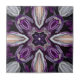Den här slående plattan har en symmetrisk kalejdoskop mönster skapat från en högupplöst bild av en naturlig ametyst-geod. Geodens lila i riken och okomplicerade förband förstärks av den kaleidoskopiska effekten, vilket resulterar i en visuellt fängslande utformning. Perfekt för att du har lagt till en liten del naturskönhet och modern elegans i alla utrymmen. Perfekt för kök, badrum eller som dekorativ accent.