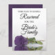 Dessa överdimensionerade platskort i bröllop är designade för att informera gästerna om vilka platser som är reserverade för brudens familj. Eleganten har en vacker utformning av lila färgad ro, som är vacker och som reflekterar i ett bassäng i vatten med vinkara och krämer. Anpassadet lyder: Denna plats är vänligt reserverad för Brides familj.