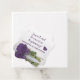 Dessa vackra favoritmärken är perfekt för ätliga bröllopsfavoriter. Elegantens utformning är ett vackert foto av en ametyst lila färgad ro som reflekterar i bassäng i vatten. Skriptet i finare lyder "En ljuv ände till vår nya början!" med utrymme för namn/namnteckning nedan.