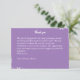 Show your appreciation with this elegant wedding thank you card, designed with a deep amethyst purple background and classic white typography. The card features a graceful "Thank You" script header and a thoughtful message of gratitude for your guests' presence and support. Delicate white filigree accents in the corners tie the look together, making it the perfect final touch for your cohesive spring or summer wedding stationery suite.