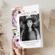 Säg "tack" till familj och vänner med vår snyggt och det moderna fotot-studenten-kortet. Konstruktionen har en gräns av färgade vattenfärgkristaller i skuggor av rosa och lila. "Tack" visas i ett svart modernt serif-teckensnitt. Anpassa de unika tackkort du får från studenten genom att lägga till ditt foto, namn, namn och studenten. Insidan av kortet visningar en vacker vattenfärgsdesign på lilan till lämnat med ditt skrivna eller handskrivna tackmeddelande på högerna.