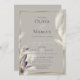 Skicka inbjudningskorten till förlovningsfesten på samma tema som bröllop. Chic Ametyst Anthurium Pampas Grass-inbjudningar ger en modern och romantisk beröring till alla bröllop. En varm grått-bakgrund från svampar grädde och ametyst anurum-löv från färgad, med dubbla guld reflekterande linjer längs kant. En kombination av manusyrgrafi och en minimalistisk textlayout i contemporary stil gör den till en trendande stil bröllop-svit. Detta är en del av en bröllop-stationär samling med matchande tillbehör till bröllop. Originalteckningar av © WhimsicalArt™ skapat för BarefootBride™