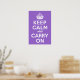 Lila och vit "Keep Calm and Carry On", modern version av klassisk poster.