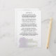 Den här infogningen är designad som ett tillägg till vårt matchande, sammanfogade program. Använda det för böner, hymner eller annan extra-information som dina gäster kan behöva. Den har en enkel men fin utformning med en enda, långdragen ametyst lila färgad ro ljugande på dess sida och reflekterar i ett bassäng av vatten med vinkara och krusande föremål. Bilden visas som en vattenstämpel för blek, så om texten sträcker sig över den kan du fortfarande läsa den. Ett bra sätt att lägga till fler funktioner i bröllopsprogrammen.