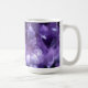 En detaljerad närbild av ett kluster av ametystkristaller som visar sina karakteristiska lilor, varierade storlekar och former och reflekterande yta mot mörkens bakgrund.