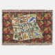 Vilken bonanza för att besegra fläkt! Den ursprungliga digitala målningen av Leslie Sigal Javorek på denna filt börjar med en formgivning av den piercade formen av Amish Bröllop-Ring med hjälp av plaid mönster under höstshaden av oliv grönt, rött, majs och rostbrunt. Laid över denna bas är en mindre 9-blocksapparat med traditionella berättande kort med flera färgader på obehandlad muslim.