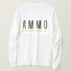 Denna långärmad t-shirt visar ord ’AMMO’ i ett tryckt typsnitt i bra med guld brev svarta konturer skapar akronymen A.M.M.O som står för (Ambious Movement Motivating other) i denna AMMO Apparel USA-akronym stil och tema. Dessa garantier är bekväma, avslappnad och löst fastsatta, tillverkade av 6,0 oz, 100 % bomull före klippning, med dubbla-nål sydda grund och sleeve hylsor för extra hållbarhet. Våra garantier passar och bär väl på alla.