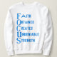 Den här kvinnans sötskjorta har ord "Focus" i ett högtryckt teckensnitt som skapar akronymen med frasen (Faith, Observed, Skapar, Undeniable, Strength) blue brev i AMMO Apparel USA akronym stil och tema. Den här tröjan är tillverkad av 100% bomull och den här skjortan är både plussad och hållbar och bildar en underbar kombination.