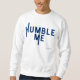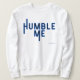 Den här manar-tröjan visar ord "Humble Me" i ett unikt vintage kant-tryckt typsnitt med svart brev blå kontur plus accent och matchande ordalydelse på baksidan i detta inspirationstecken AMMO Apparel USA stil och tema. Dessa sweatshirts är tillverkade av 100% bomull och skjortan är både plussad och hållbar och bildar en underbar kombination.