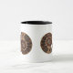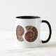 Fotografi av ammonitfossilar på anpassadets bakgrund färg. Bild på båda sidor om mugg.