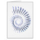 Ett minimalistiskt, grafiskt och enkelt fossilt ammonitmotiv i blått och vitt inspirerat av ett som finns på Jurassic kusten.