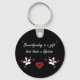 Den här nyckelringen har vit text där du läser Amning är en gåva som varar en livstid som dekoreras med hjärtan och blommor mot en svart bakgrund.