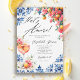 An elegant That’s Amore bridal shower invitation featuring a fresh watercolor citrus floral design framed with a classic blue Italian tile pattern. Inspired by Italian-themed bridal showers, this invitation combines citrus elements with soft Bouganvillea florals and timeless Mediterranean tile details for a romantic and stylish look.