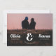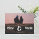 Det här Spara datumkortet har en fotobakgrund med en stor fullt som ansluter parets namn. Datum och plats i bröllop omger ampersanden ge intrycket av vintage frimärke. Det återinspirerade teckensnittet för anpassadets namn lägger till det unika datortecknet för att spara datumkortet. På baksidan av kortet finns en plats för att ytterligare ett foto och en bröllop-webbplats eller andra detaljer om den stora dagen.